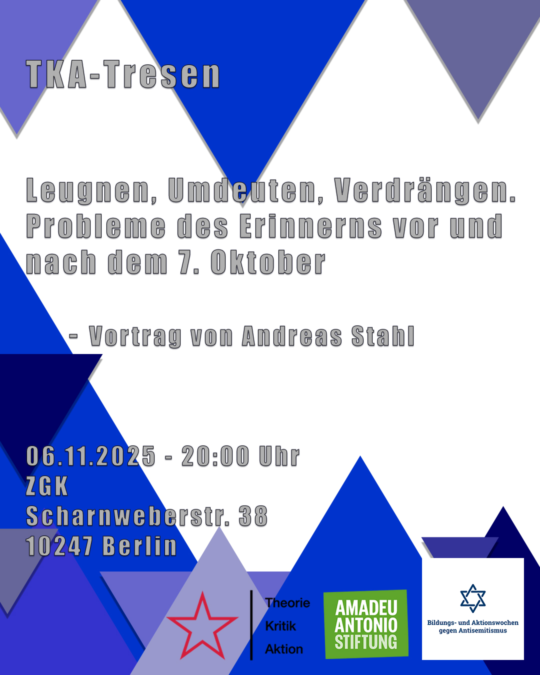 Es ist wieder TKA-Tresen und wir haben im Rahmen des bevorstehenden Gedenkens an die Novemberpogrome Andreas Stahl und Jakob Hoffmann zu Gast. Vor dem Hintergrund […]