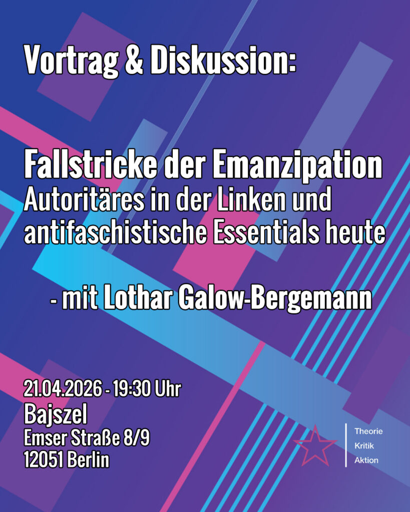 Alle Verhältnisse umzuwerfen, in denen der Mensch ein erniedrigtes, ein geknechtetes, ein verlassenes, ein verächtliches Wesen ist. Besser lassen sich Anspruch und Programm menschlicher Emanzipation nicht auf den Punkt bringen. Wenn der Begriff Links Sinn hat, dann diesen. Oft sehen linke Theorie und Praxis jedoch ganz anders aus. Was längst überwunden sein sollte, lebt auch in vielen linken und linksradikalen Strukturen und Denkweisen fort: Die Herrschaft von Zwangsgemeinschaften und von Menschen über andere Menschen.